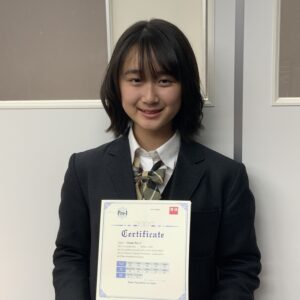 二次面接試験を受けたときに、普段からビーンズでネイティブの先生と話していたので、質問の意味が良く分かったし、自分で思っていることを英語でうまく話すことが出来ました。ビーンズで普段の生活が英検の合格にもつながると思って日々のビーンズでの生活を楽しく過ごすことが一番役立つと思います。年中のころからサマースクールやウィンタースクールの英検対策を受けたり、家で過去問の練習をしたりしたので、それも効果があったと思います。